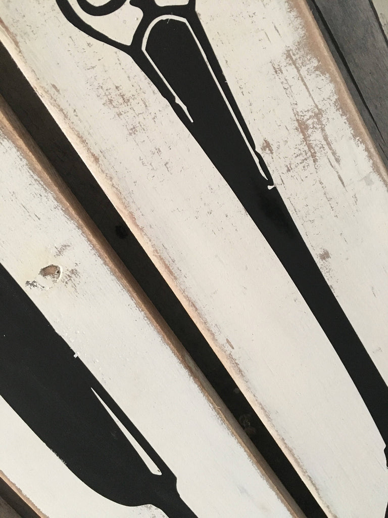 Looking to add a farmhouse feel to your kitchen! These rustic wood silverware set signs each piece measures 4"x20" and is stained wood and utensils are painted in white.