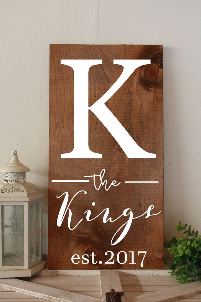 This personalized last name sign is the perfect wedding, engagement or anniversary gift. Makes an excellent house warming gift with last name and established date.