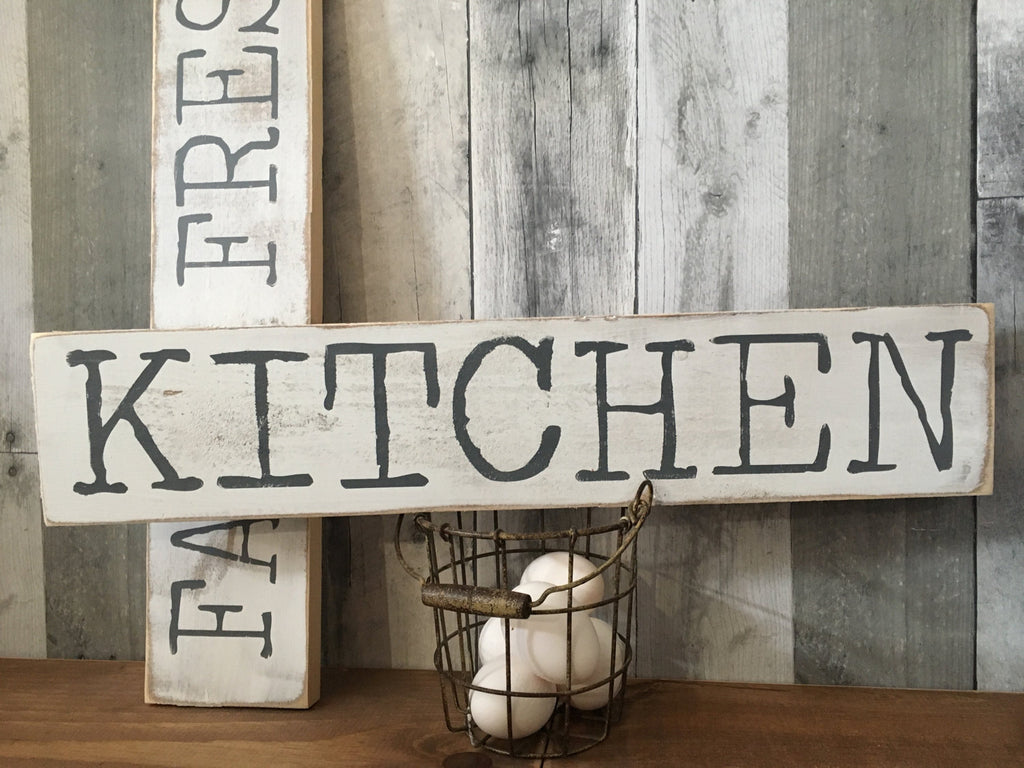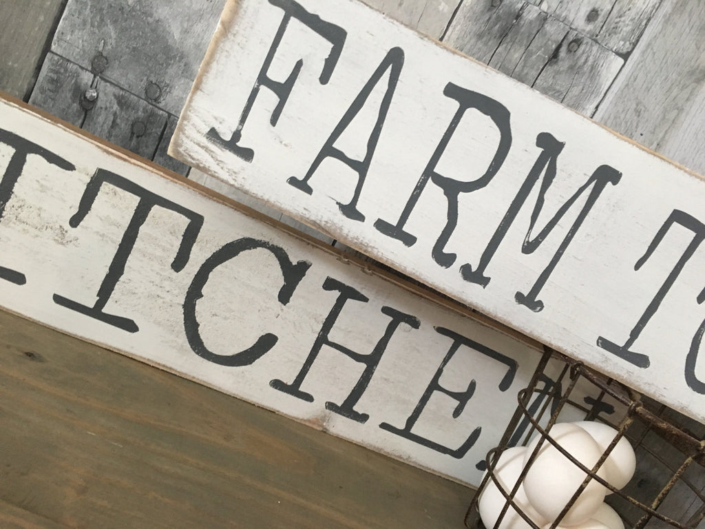Your choice of farmhouse sign! You pick the quote you would like on your sign. Whitewashed with a dark gray writing. A perfect addition to any farmhouse kitchen! Sign measures 4"x20" long. Comes ready to hang!