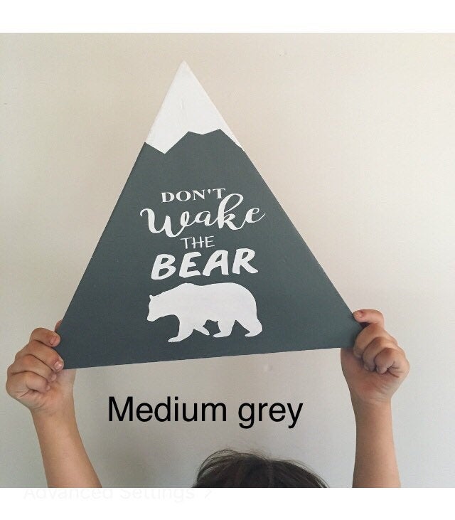 Don't wake the bear handpainted on a wooden mountain. This adorable sign can compliment any room!