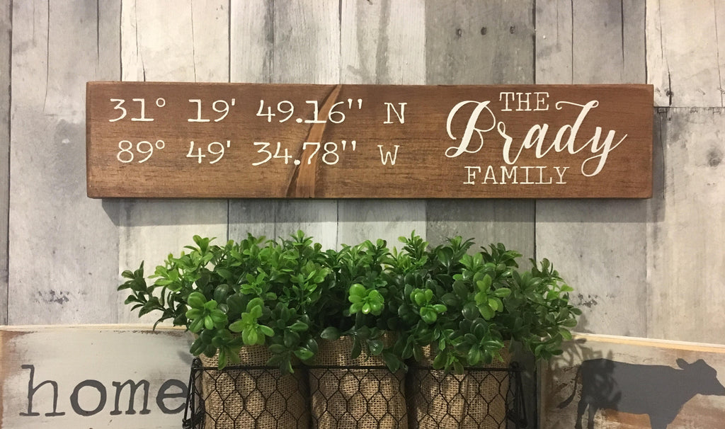 A great way to remember your favorite location! Your address? Place you got engaged/married? Place you met? Or where your children were born? Whatever coordinates are special to you just put them on a sign!